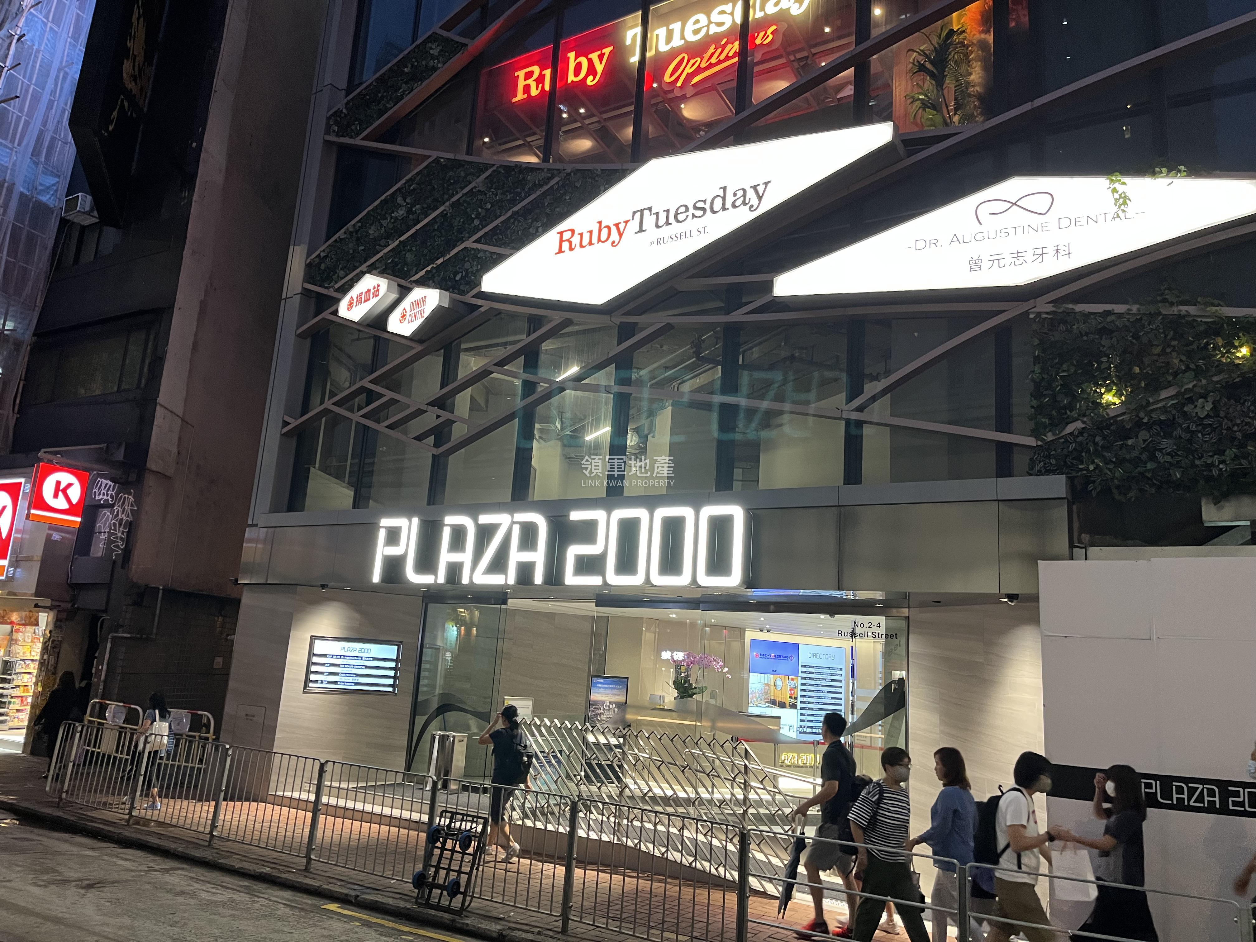 2000廣場是一座25層高商業大廈坐落於堅拿道東和羅素街交界距地鐵銅鑼灣站A出口僅2分鐘步程。鄰近甲級建築包括時代廣場2座、 金朝陽中心 及The Hedon。
